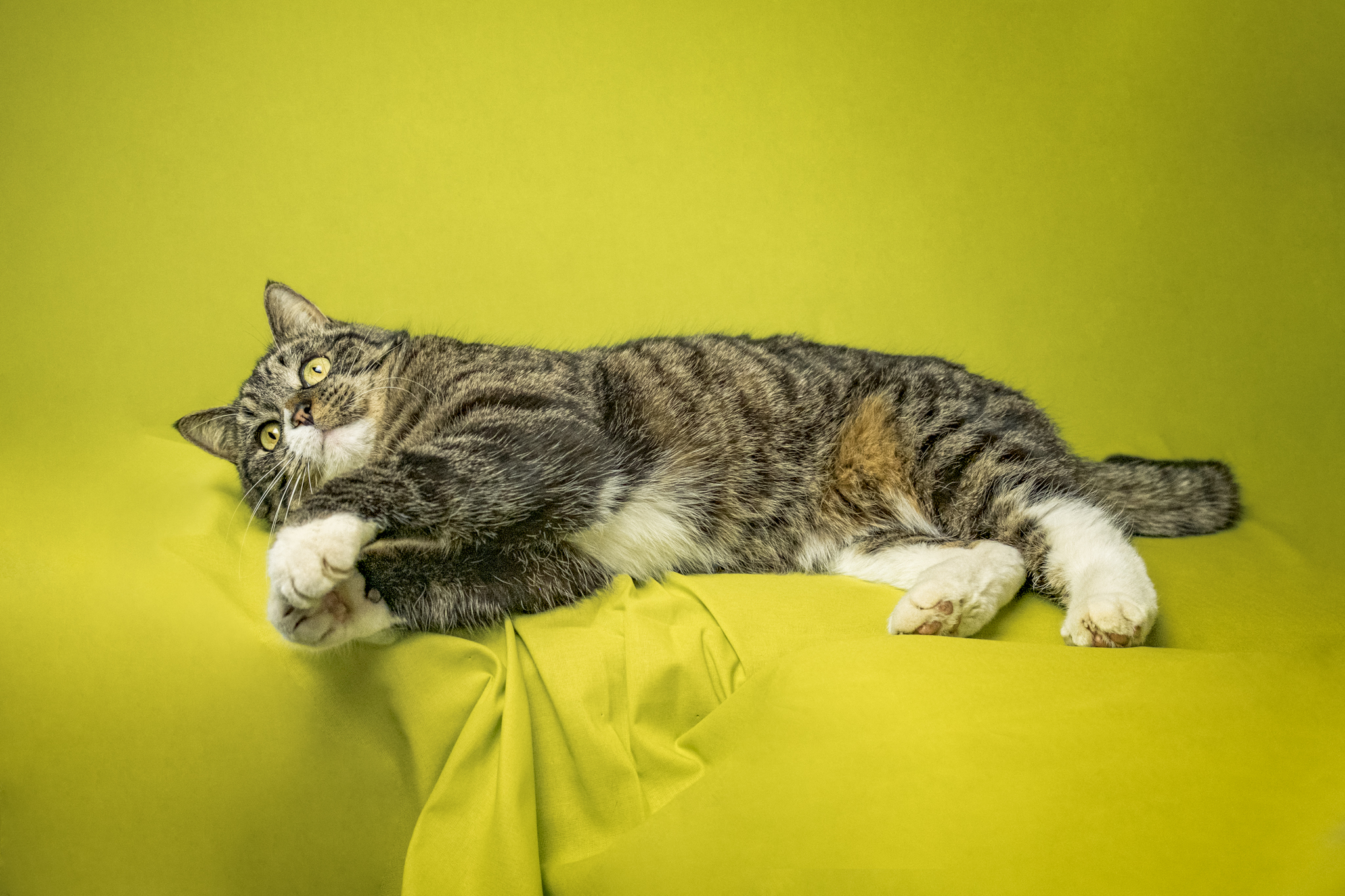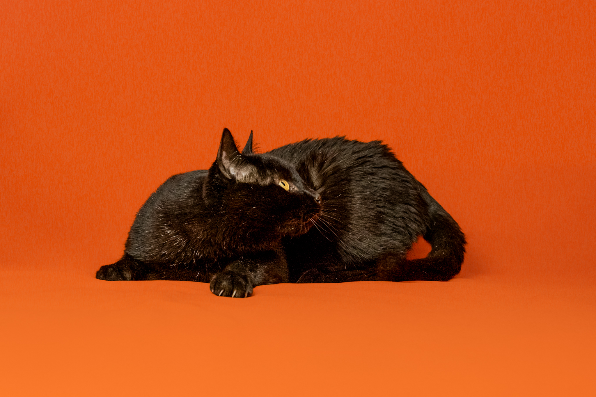 Je me déplace chez vous avec mon fond et ma lumière. Nous faisons alors les photos de votre chat en toute tranquillité.